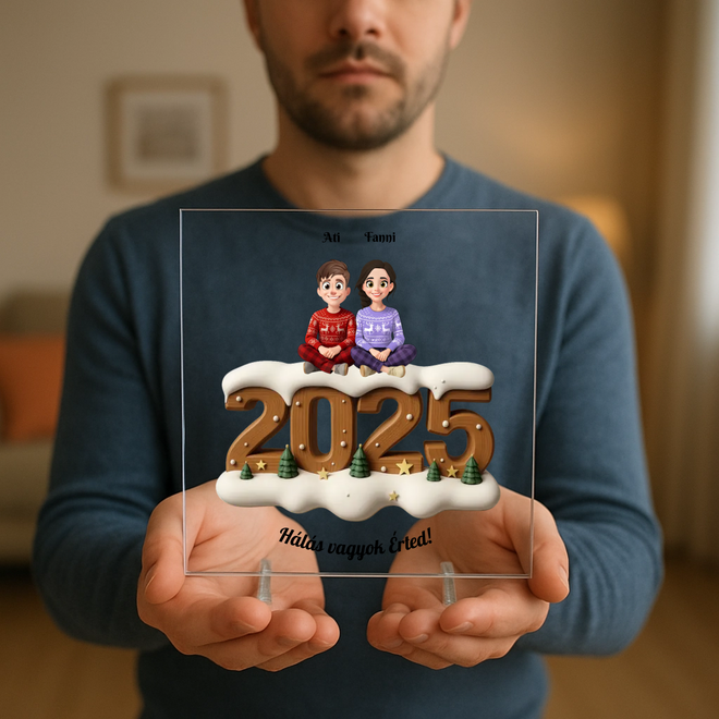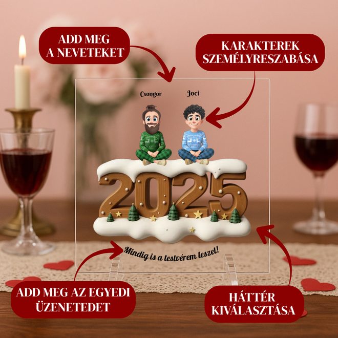 Igen, teljes mértékben személyre szabható: választhatsz figurákat, neveket, idézetet, évszámot és akár házi kedvencet is.