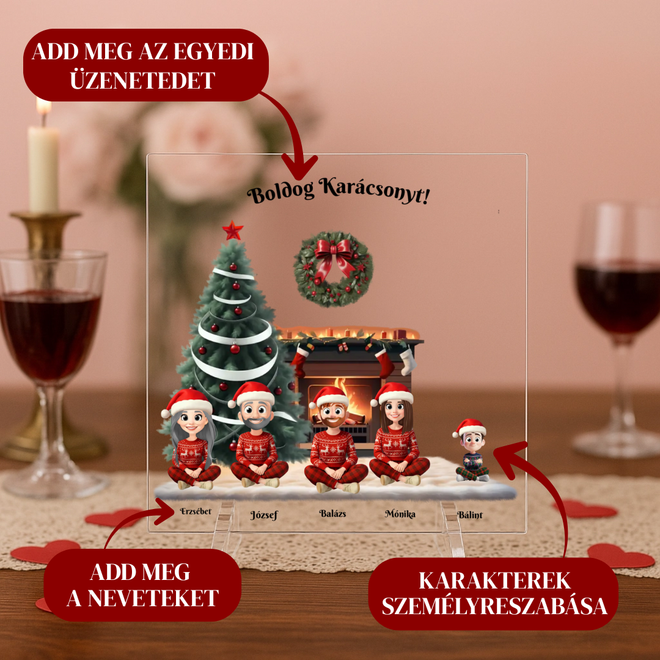 Igen, teljes mértékben személyre szabható: választhatsz figurákat, neveket, idézetet, évszámot és akár házi kedvencet is.